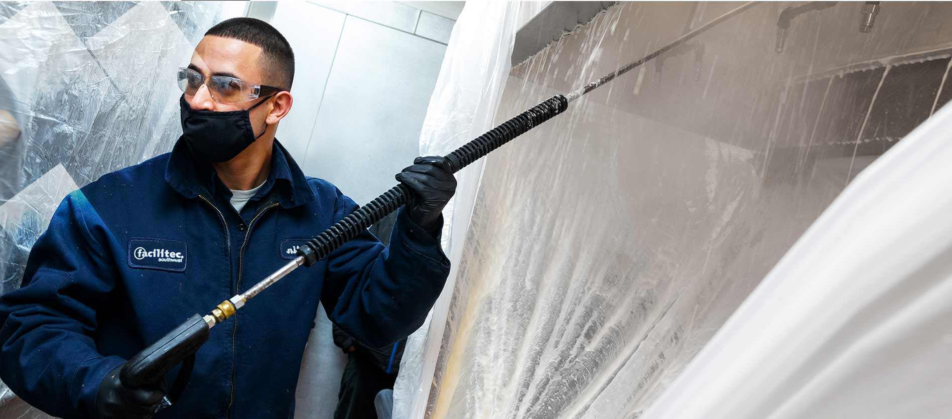 Facilitec Southwest is the leading provider of kitchen exhaust cleaning and rooftop grease containment throughout Texas, Oklahoma, Arkansas, Colorado, Kansas, Louisiana, and New Mexico. For more than 30 years, our team has helped restaurants, hotels, hospitals, casinos, schools, and industrial kitchens stay grease-free, compliant, and protected from fire risk. Fully insured, bonded, and certified, we deliver reliable service, thorough documentation, and customer-first support on every job.