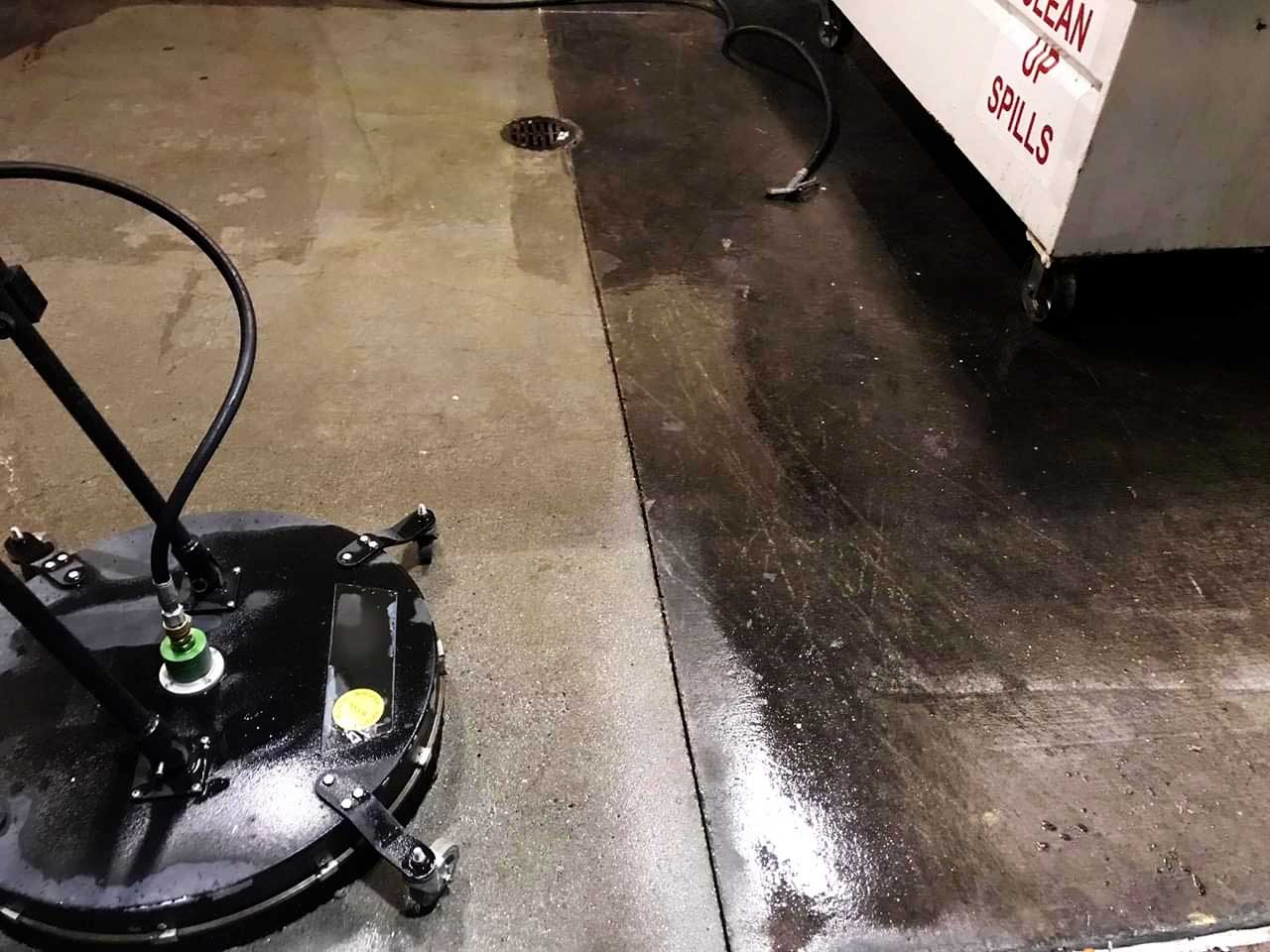 Commercial pressure washing with hot water + targeted agents